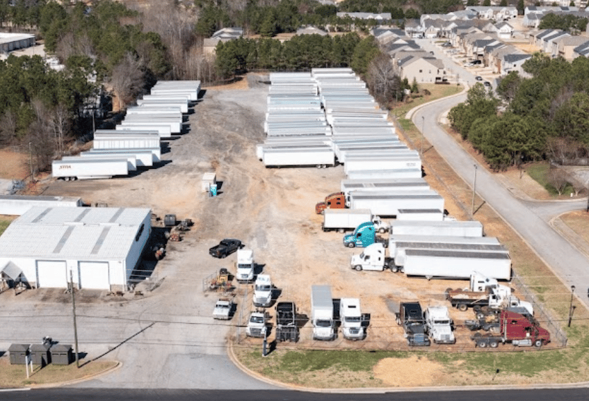 5 acre yard with 4,500 sq. ft. truck repair shop on site.